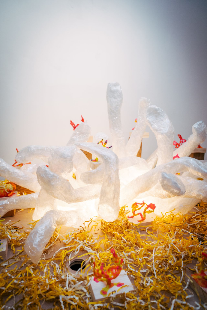 Buitenaards, kleurrijk en driedimensionaal: dit zijn de sculpturen van Nick Ervinck. De expo was een samenwerking met Basisschool Simonnet.